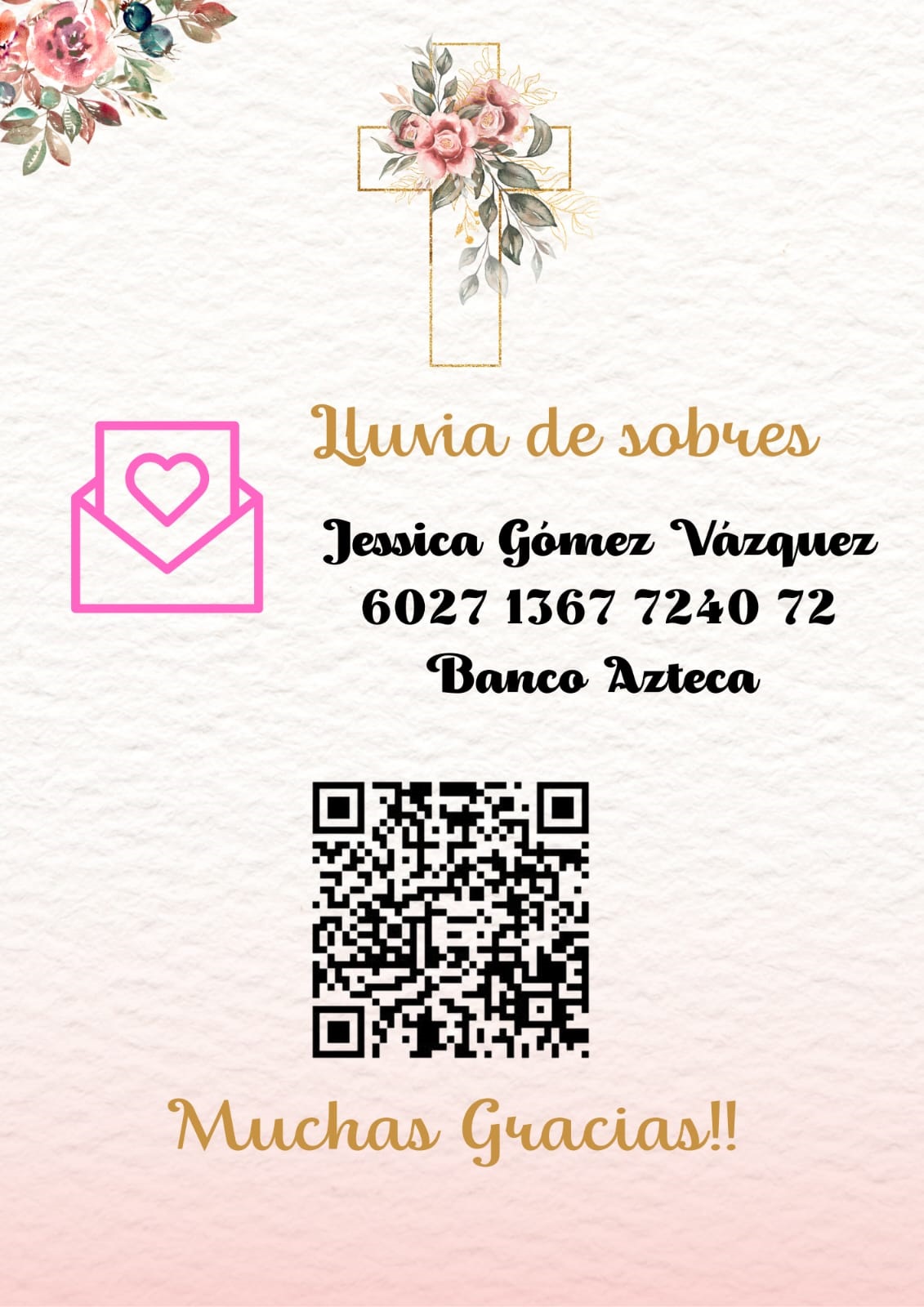 Tu presencia es lo más importante para nosotros en este día tan especial pero si algo nos quieren regalar, en efectivo lo sabremos apreciar...